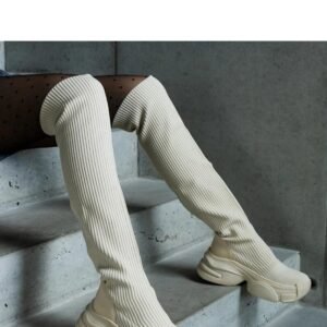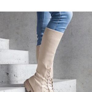 Beżowe wsuwane kozaki z elastyczną cholewką na masywnej podeszwie Lokira – Solea