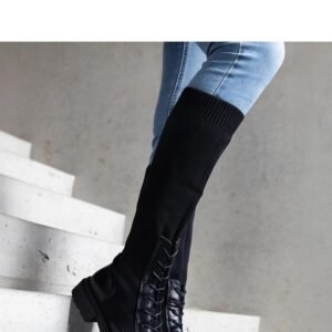 Czarne wsuwane kozaki z materiałową elastyczną cholewką Luana – Solea