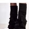 Eleganckie czarne kozaki Calliope to idealny dodatek do każdej jesiennej i zimowej stylizacji. Wykonane z gładkiej ekoskóry, ozdobione delikatnymi przeszyciami, prezentują się bardzo stylowo i elegancko. Wygodne zapięcie na zamek błyskawiczny po wewnętrznej stronie cholewki ułatwia ich zakładanie i zdejmowanie. Kozaki posiadają płaski obcas oraz solidną podeszwę ze stylowymi żłobieniami, co zapewnia stabilność i wygodę podczas noszenia. Elastyczna wstawka po zewnętrznej stronie dodatkowo podnosi komfort użytkowania. Wnętrze lekko ocieplane kocem obuwniczym zapewnia ciepło i wygodę w chłodne dni. Kozaki Calliope to propozycja dla kobiet ceniących ponadczasowy i elegancki styl. Numeracja standardowa, prosimy kierować się swoim rozmiarem przy zakupie.