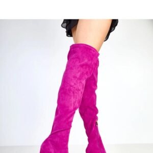 Kozaki damskie to szykowny model wykonany z wysokiej jakości ekologicznej skóry zamszowej, wyróżniający się eleganckim, szpiczastym noskiem i smukłą linią. Wysoka cholewka o długości 57 cm sięga przed kolano, optycznie wydłużając nogi i podkreślając sylwetkę. Stabilny, smukły obcas o wysokości 10,5 cm dodaje kobiecego charakteru i klasy każdej stylizacji. Buty zapinane są na praktyczny suwak, co zapewnia wygodę zakładania. Wkładka wykonana z tkaniny gwarantuje komfort podczas noszenia. Model nieocieplany, idealny na sezon przejściowy oraz eleganckie wyjścia.
