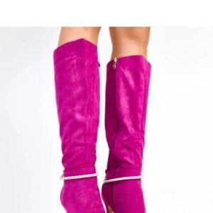 Kozaki damskie z ozdobnym łańcuszkiem to propozycja dla kobiet, które cenią sobie szyk i nowoczesny design. Wykonane z wysokiej jakości ekologicznej skóry zamszowej, prezentują się niezwykle stylowo i luksusowo. Smukły, szpiczasty nosek nadaje butom elegancji, a obcas o wysokości 10,5 cm wysmukla sylwetkę i optycznie wydłuża nogi. Atutem modelu jest subtelny łańcuszek, który dodaje całości wyjątkowego charakteru i modnego akcentu. Wysoka cholewka (39 cm) sięgająca przed kolano doskonale podkreśla nogi, a praktyczne zapięcie na suwak ułatwia zakładanie. Wkładka z tkaniny zapewnia wygodę podczas noszenia. Model nieocieplany, idealny na sezon przejściowy i eleganckie okazje.