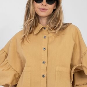 Stylowa damska kurtka jeansowa w casualowym wydaniu, idealna na wiosnę i lato. Wykonana z wysokiej jakości bawełny, zapewnia komfort noszenia na co dzień. Krótki fason pięknie podkreśla sylwetkę, a dół oraz rękawy wykończone modnym wystrzępieniem dodają całości lekkości i charakteru. Model zapinany jest na guziki, z przodu posiada praktyczne naszyte kieszenie. Rękawy 3/4 z falbaną wprowadzają subtelny, kobiecy akcent, który świetnie przełamuje klasyczny jeansowy styl. Kurtka jest bez ocieplenia, dzięki czemu doskonale sprawdzi się w cieplejsze dni. To uniwersalna propozycja do codziennych stylizacji, idealna zarówno do sukienek, jak i jeansów czy spódnic.
